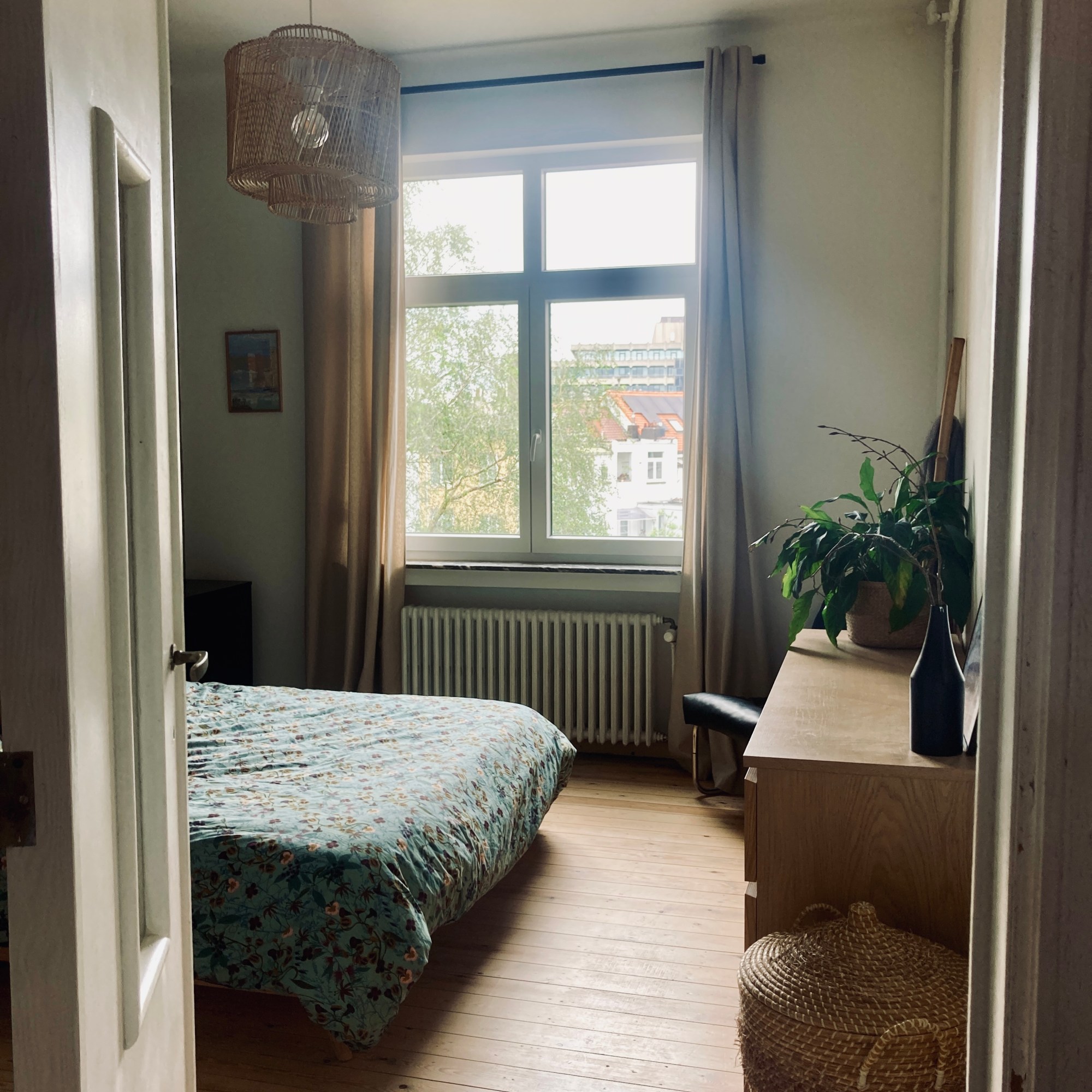 After painting, I took some time to decorate and invest in some basic but really necessary pieces of furniture: a BED FRAME, a comfy MATTRESS, good fluffy PILLOWS, a soft RUG for my feet and a CHEST OF DRAWERS for all my clothes. Oh, and I will tell you about these fantastic CURTAINS. Gosh they are perfect. The mix of linen and cotton is just a dream and gives a luxurious finish to the room, while allowing the softest light to go through. Simply perfect.